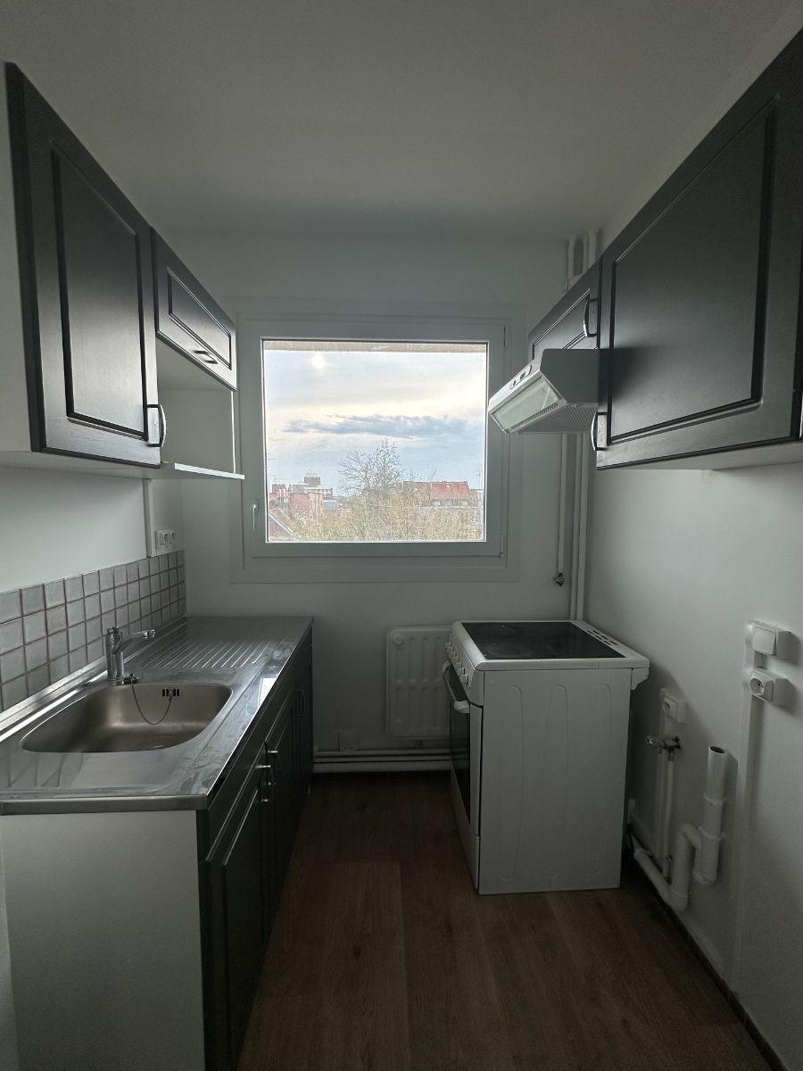 LILLE - Place Philippe de Girard - Résidence Philippe de Girard - FLOCL114 APPARTEMENT EN RESIDENCE SECURISEE de type 2 (env 41 m²) au 5ème étage (avec ascenseur) comprenant : Hall d'entrée, salon/salle à manger avec placard, cuisine meublée et équipée (avec hotte aspirante et gazinière), une chambre, salle de bains (avec vasque et baignoire) et WC séparé. EN OUTREE : balcon, cave et place de stationnement. ELEMENTS D'EQUIPEMENT : eau courante froide et chaude selon décompteur, chauffage au gaz collectif et électricité par compteur individuel. Disponible au 23/03/2026 Loyer hors charges : 660 EUR / mois + charges : 225 EUR / mois (comprenant la consommation d'eau par relevé de décompteur, frais de chauffage collectif au gaz, l'entretien et l'électricité des parties communes et l'entretien de l'ascenseur) DPE : E Honoraires frais de bail : 50 EUR (bail visite et constitution du dossier)