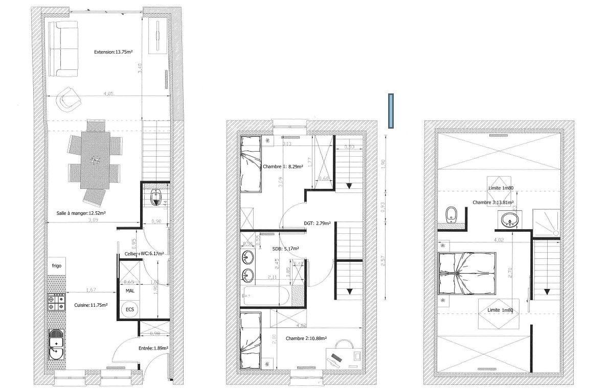 BAILLEUL - ROUTE DE LILLE - LE SEAU - FLOCB810 MAISON DE VILLE de type 4 (env 87.78m²) comprenant : REZ DE CHAUSSEE: hall d'entrée, cuisine meublée et équipée (avec hotte aspirante, plaque de cuisson et four), salle à manger, salon, buanderie et WC PREMIERE ETAGE: palier, deux chambres, salle de bains (avec double vasque et baignoire) DEUXIEME ETAGE: une chambre avec sa salle d'eau (vasque, douche et WC) En outre terrasse et jardin d'environ 50m² Disponible au 27/02/2026 ELEMENTS D'EQUIPEMENT: chauffage éléctrique, production d'eau chaude par cumulus éléctrique, persiennes éléctrique et tout à l'égout DPE D Loyer hors charges: 625 EUR / mois Dépôt de garantie : 625 EUR Honoraires plafonnés à 8EUR/m² : 625EUR (bail, visite et constitution du dossier)