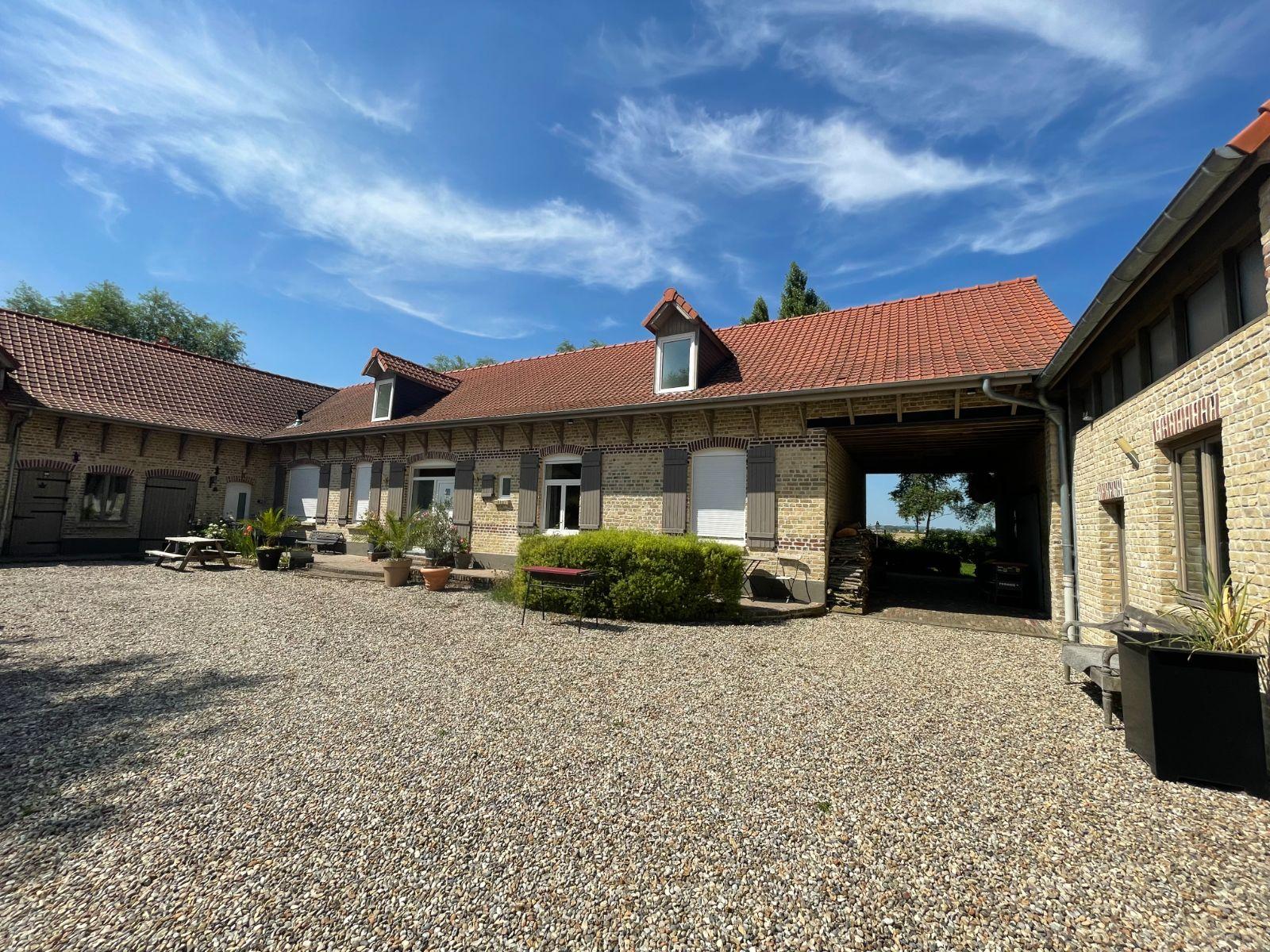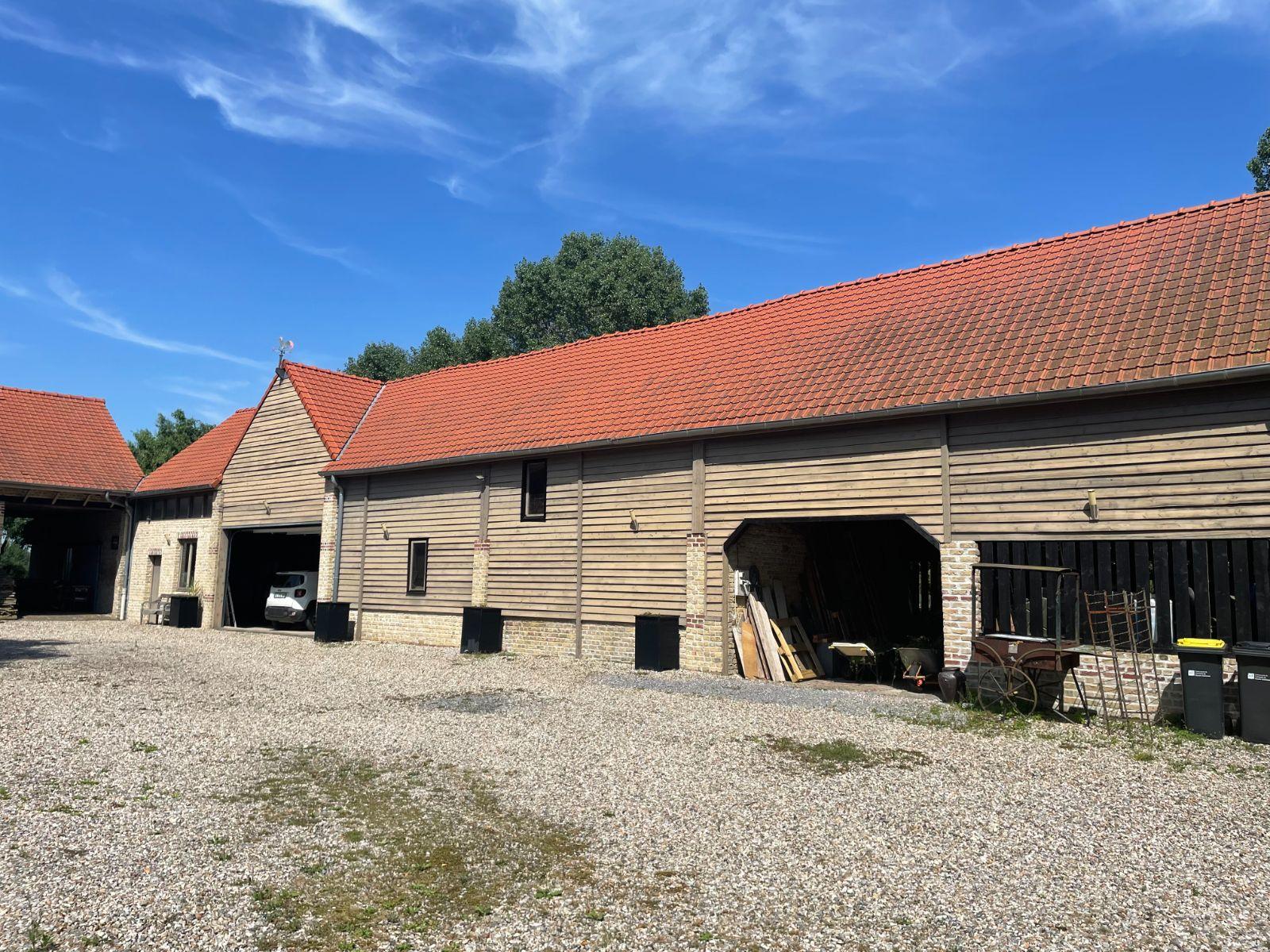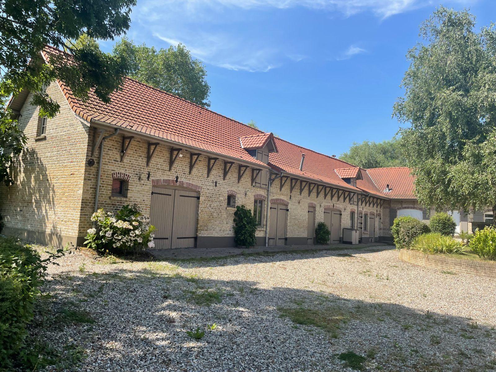 A VENDRE à BAILLEUL (Hameau) dans le NORD (59) : MAGNIFIQUE CORPS DE FERME ENTIEREMENT RENOVE en U sur une parcelle de 5650 m² parfaitement entretenue est idéalement située au calme offrant un cadre de vie paisible et verdoyant, à seulement 8 minutes du Centre-Ville de Bailleul. Elle se compose en 3 parties. La première en habitation principale de 300 m2, avec au rez de chaussée entrée principale, salon avec cheminée, séjour avec feu à pellet, petit coin détente, cuisine aménagée, bureau, suite parentale comprenant chambre, dressing et salle de bains, cellier, buanderie et Wc. A l'étage grande mezzanine avec coin salon, salle de bains et 5 chambres dont une avec salle d’eau. La deuxième partie sur une surface totale de 127m², on retrouve au rez-de-chaussée un local technique, Plusieurs garages et à l’étage un grenier de 148m² aménageable avec un accès également par la partie habitation. La 3ème partie est un bâtiment refait à neuf d’une surface de 218m² avec garage/atelier/mezzanine idéal pour un artisan ou collectionneur et vous profiterez d’un espace bar pour des moments de convivialité. Le bien est équipé d'une pompe à chaleur. Ne manquez pas cette occasion unique d'acquérir une belle propriété en campagne sans travaux à prévoir. Les informations sur les risques auxquels ce bien est exposé sont disponibles sur le site Géorisques : www.georisques.gouv.fr. Contacter Gaëlle BOUQUET 06 86 81 79 57 pour plus de renseignements et les visites.